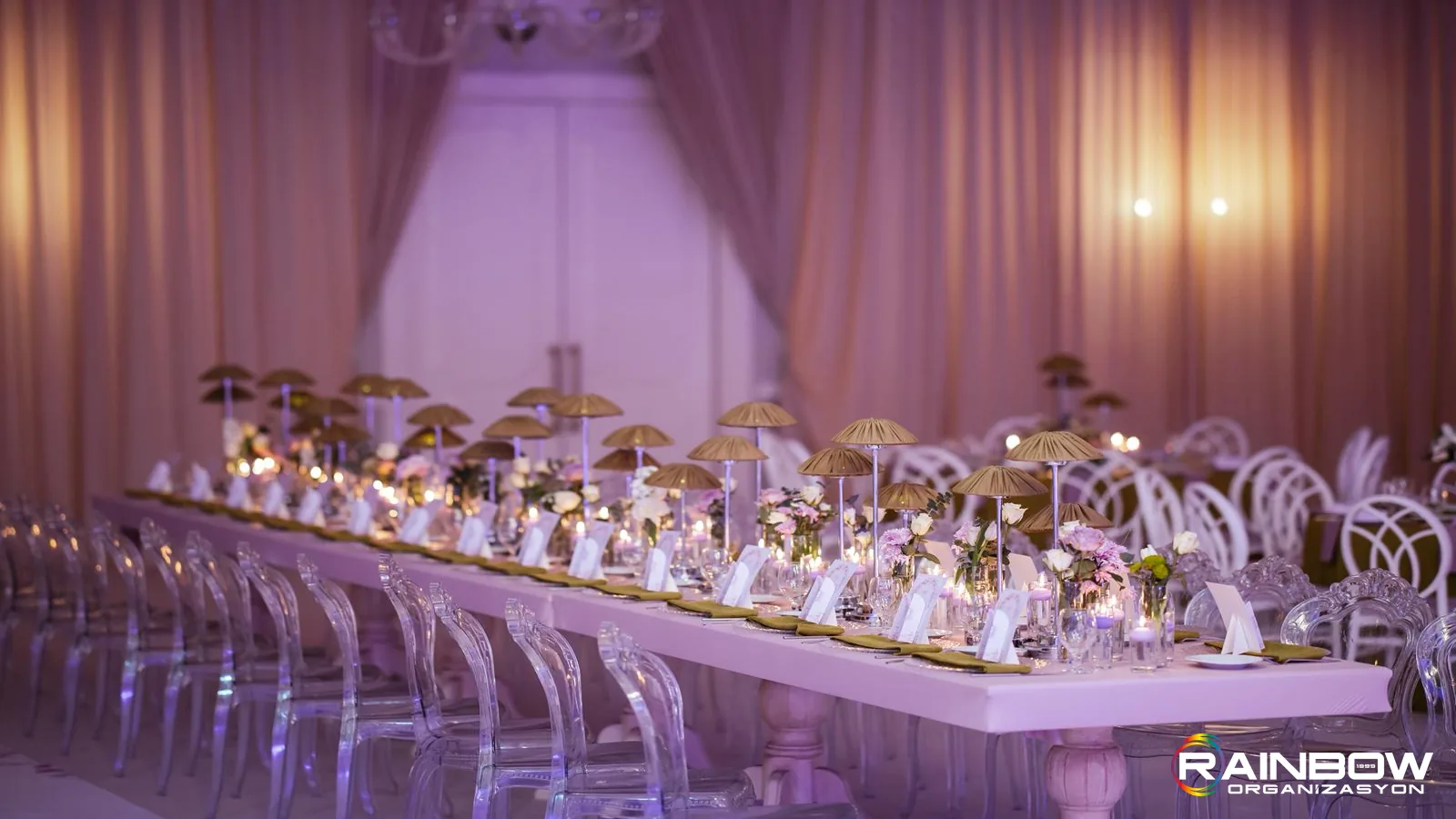 Bursa'da hayalinizdeki o özel gün için en şık düğün davet süsleme detayları. Rainbow Bursa ile her anınız kutlu olsun.